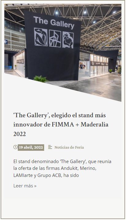 Dicen que quién no arriesga no gana. Eso mismo pensamos junto a Andukit, Merino y LAMIarte cuando decidimos ir juntos a la última edición de FIMM+Maderalia. La apuesta fue convertir el stand en un museo. El resultado ha sido que el 41,3% de los visitantes profesionales han votado a nuestro stand ‘The Gallery’ como el más innovador.